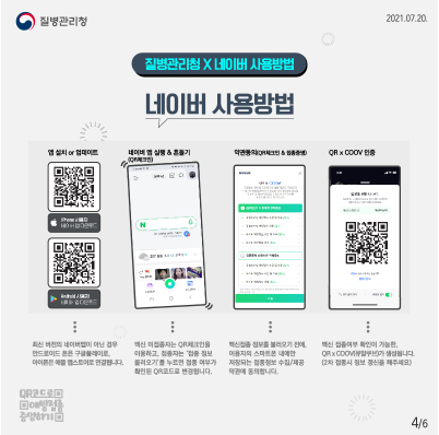 1. 앱스토어/PLAY스토어에서 질병관리청 또는 COOV를 검색하여 앱을 설치.